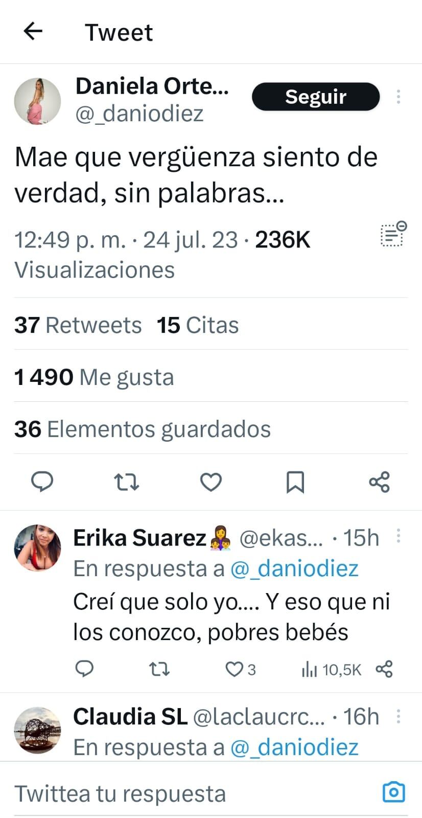 “Mae qué vergüenza siento de verdad, sin palabras...”, tuitió Daniela Ortega.