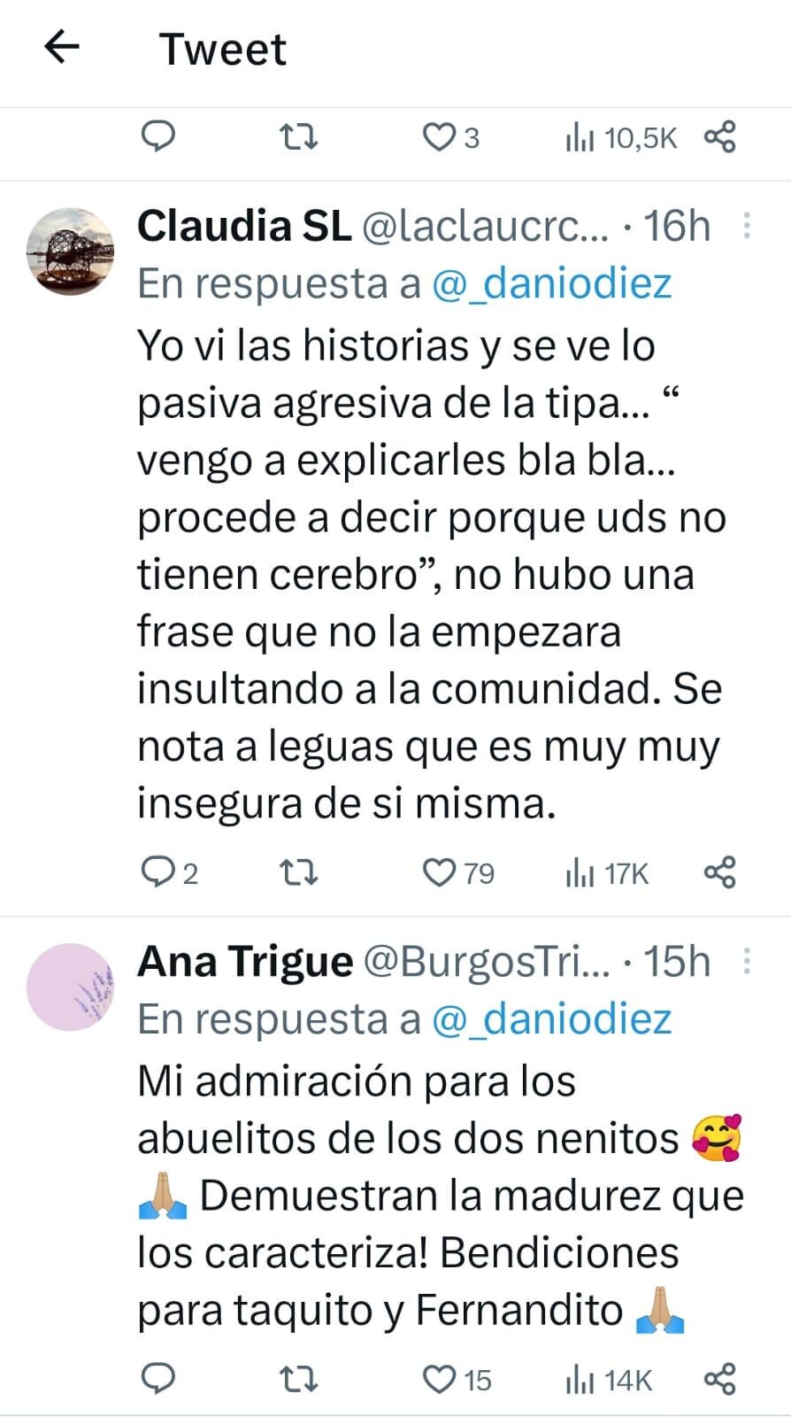 “Dani ustedes hacen lo correcto amando tanto a taquito (Tomás). El error de él no las define a ustedes”, le escribió otra tuitera de nombre Angeluchis.