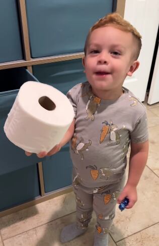Esta vez el video que se hizo viral es uno en el que el niño se encuentra un papel higiénico y le dice para lo que sirve.