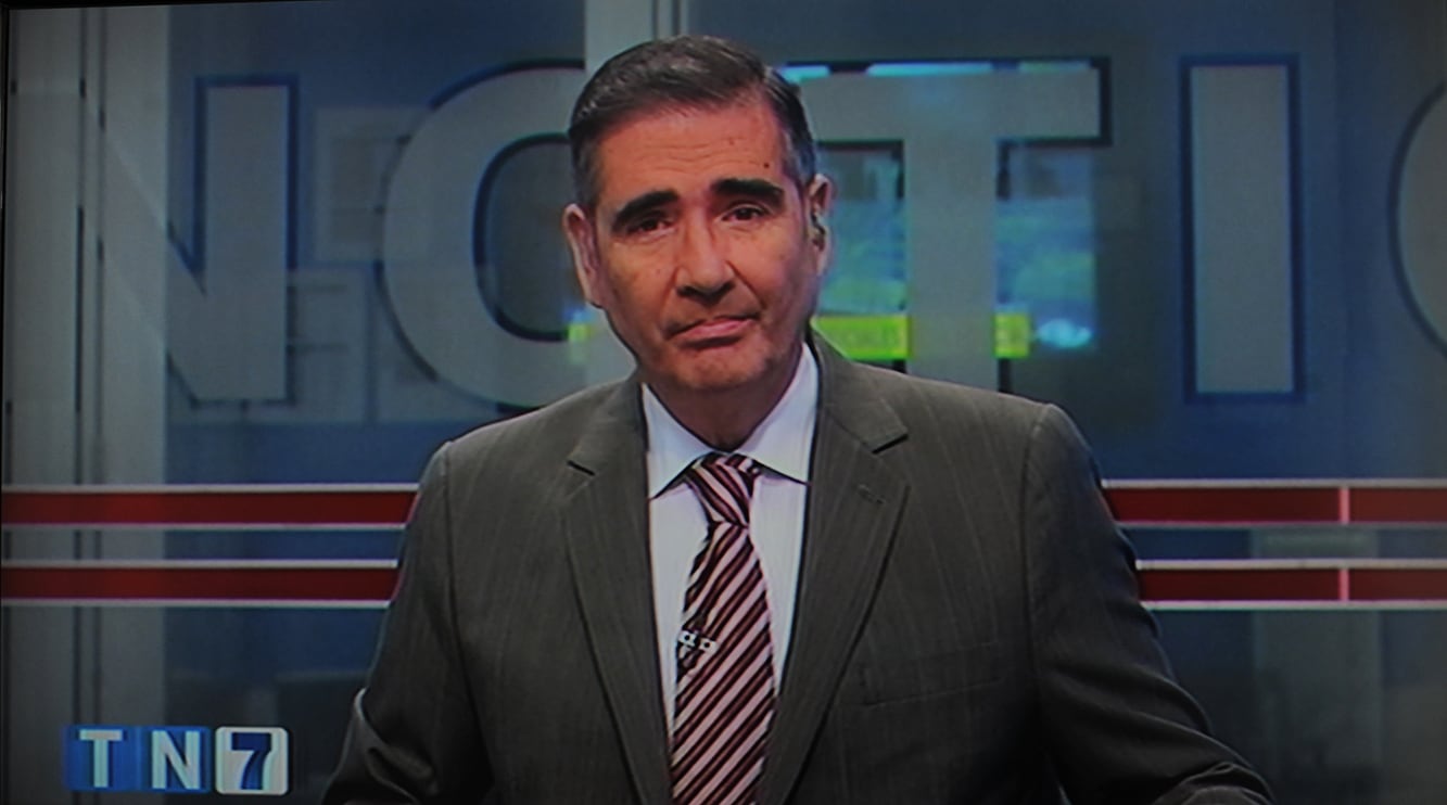 El periodista Ignacio Santos detuvo, por unos minutos, la edición del noticiero de canal 7 de este martes para felicitar a uno de sus pupilos y darle unas sentidas palabras.