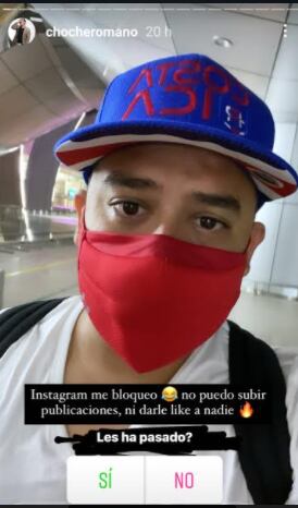 El locutor Choché Romano se quejó en sus historias de Instagram porque lo reportaron y la red social no lo deja publicar nada.