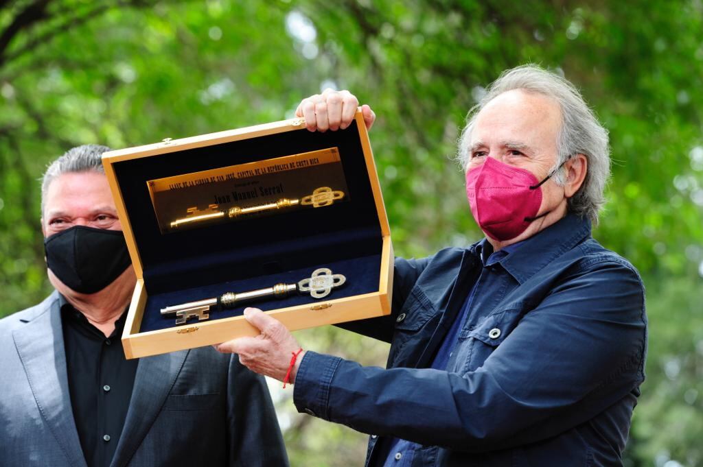 “Es para mí un honor entregar la llave de mi ciudad San José, la capital de Costa Rica a un ser humano especial, a este poeta, artista y trovador, Joan Manuel Serrat, quien a lo largo de su ilustre carrera, se ha ganado el corazón de los costarricenses. Le entrego esta llave en nombre de un pueblo que ama, promueve y defiende la paz, una nación que cree en la justicia social, el bien común y la tolerancia”, dijo Araya durante la actividad.