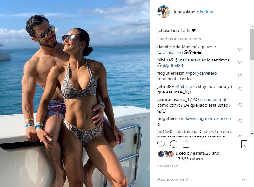 La imagen, la primera donde aparecen en pareja que subió la modelo a sus redes sociales, fue tomada el fin de semana pasado en Quepos, ya que ambos andaban de vacaciones en un lujoso yate.