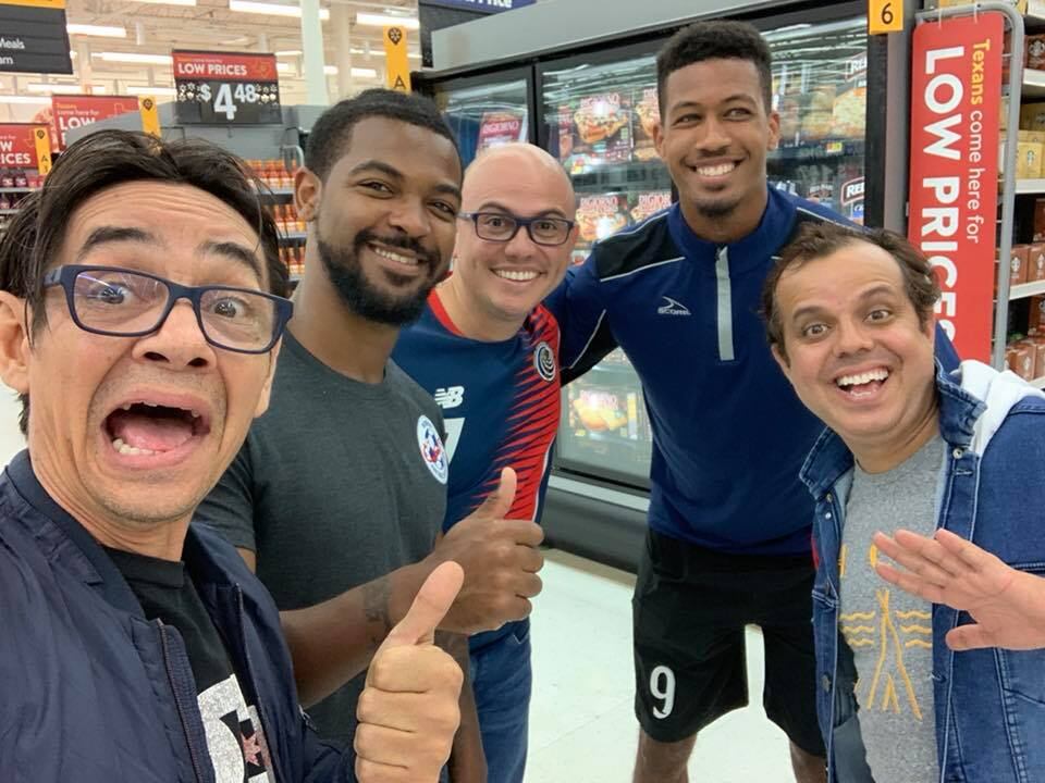 El par de actores ticos, recientes ganadores de “Tu cara me suena”, jalaron a la Copa Oro para ser parte de la fiesta del fútbol y casualmente se toparon en un supermercado con algunos seleccionados del equipo caribeño.