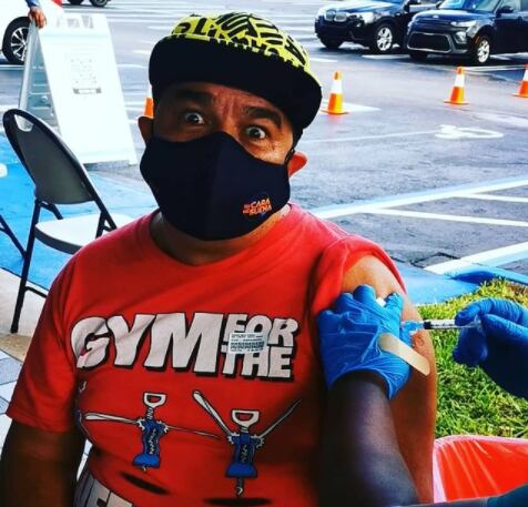 Otro de los objetivos del humorista con este viaje es vacunarse contra el covid-19, dado que en Estados Unidos las vacunas son gratis, y este domingo topó con la suerte de que en el centro comercial al que fue estaban repartiendo chuzazos.