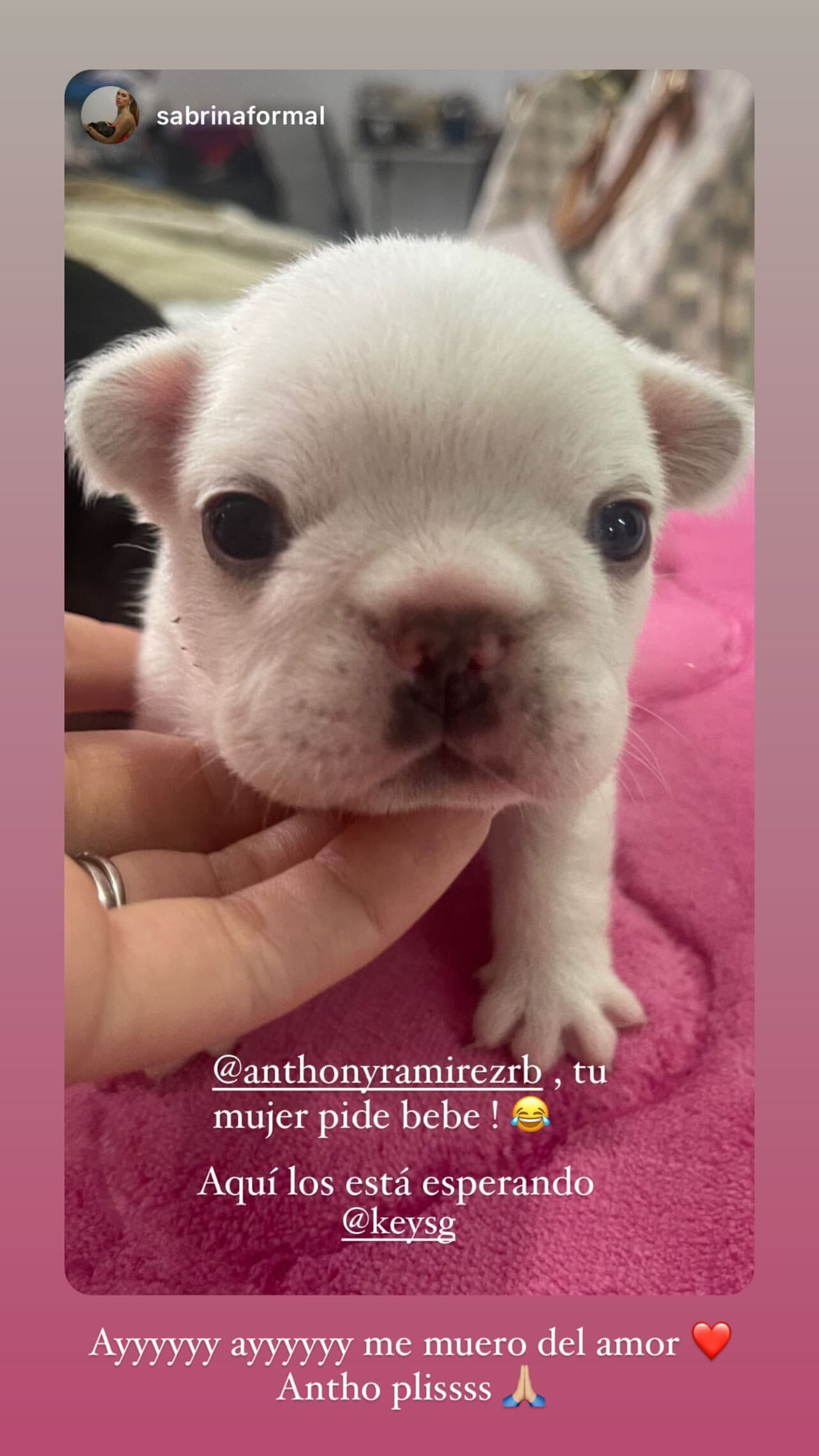 No es que Thiago tendrá un hermanito, al menos de momento no. Lo que pasa es que la bella ramonense está deseando que su amado le compre un bulldog francés a su amiga Sabrina Formal, quien recientemente anunció que su perrita había dado a luz.