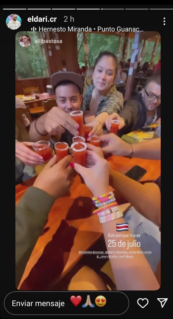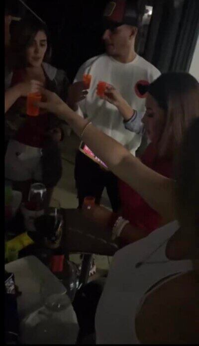 Esta vez, la situación fue parecida y en varias historias que compartieron sus compas (otra vez), se les ve todos juntitos, a punto de pegarse un buen traguito de lo que pareciera un shot de chiliguaro.