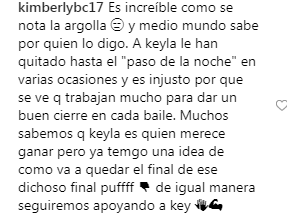 “Ánimo que bailan demasiado chiva”, “te mereces una puntuación perfecta”, y “yo jamás pensé que fueras tan buena bailarina”, es parte de lo que dicen los usuarios. Aunque también hay varios comentarios pasados de tono y los que esperan un romántico beso entre ella y su pareja de baile: “Nosotros esperando que se lo aprete en esos bailes”.