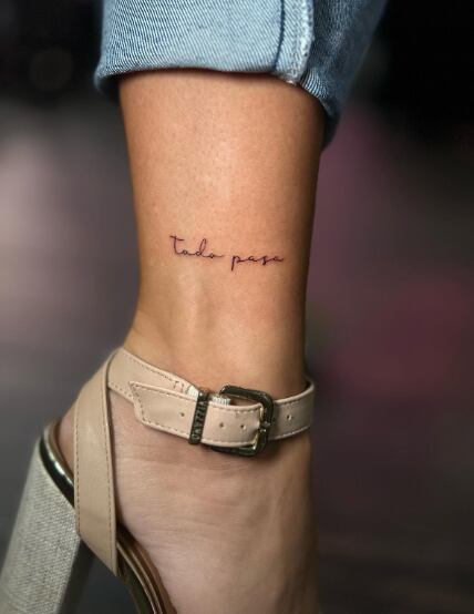 Para el otro eligió casi al final de una de sus piernas y se tatuó otra frase que solo dice “Todo pasa”.