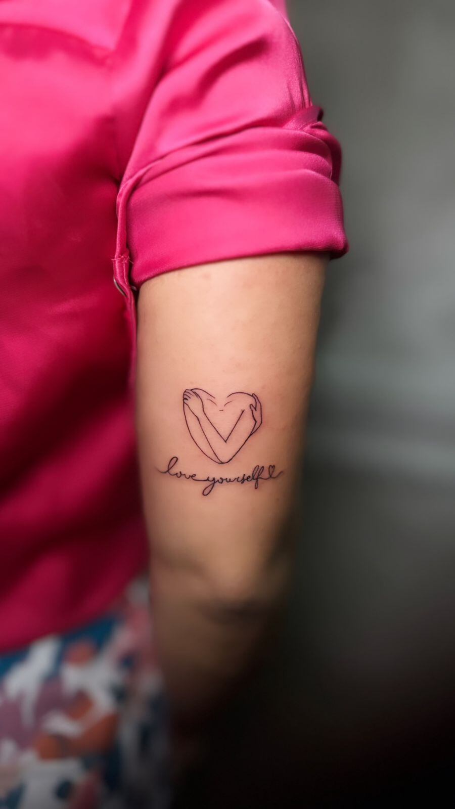 Uno de esos tatuajes se lo hizo en los tríceps del brazo izquierdo que dice Love your self, que en español significa Ámate a ti mismo, y este es el que más significado tiene para ella.