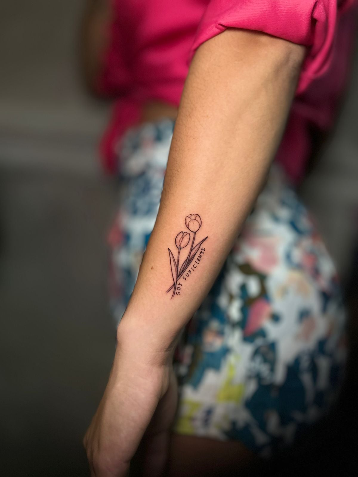 También en el antebrazo izquierdo se hizo su flor favorita, que son los tulipanes, con otra leyenda que tampoco quiere olvidar como “Soy suficiente”.