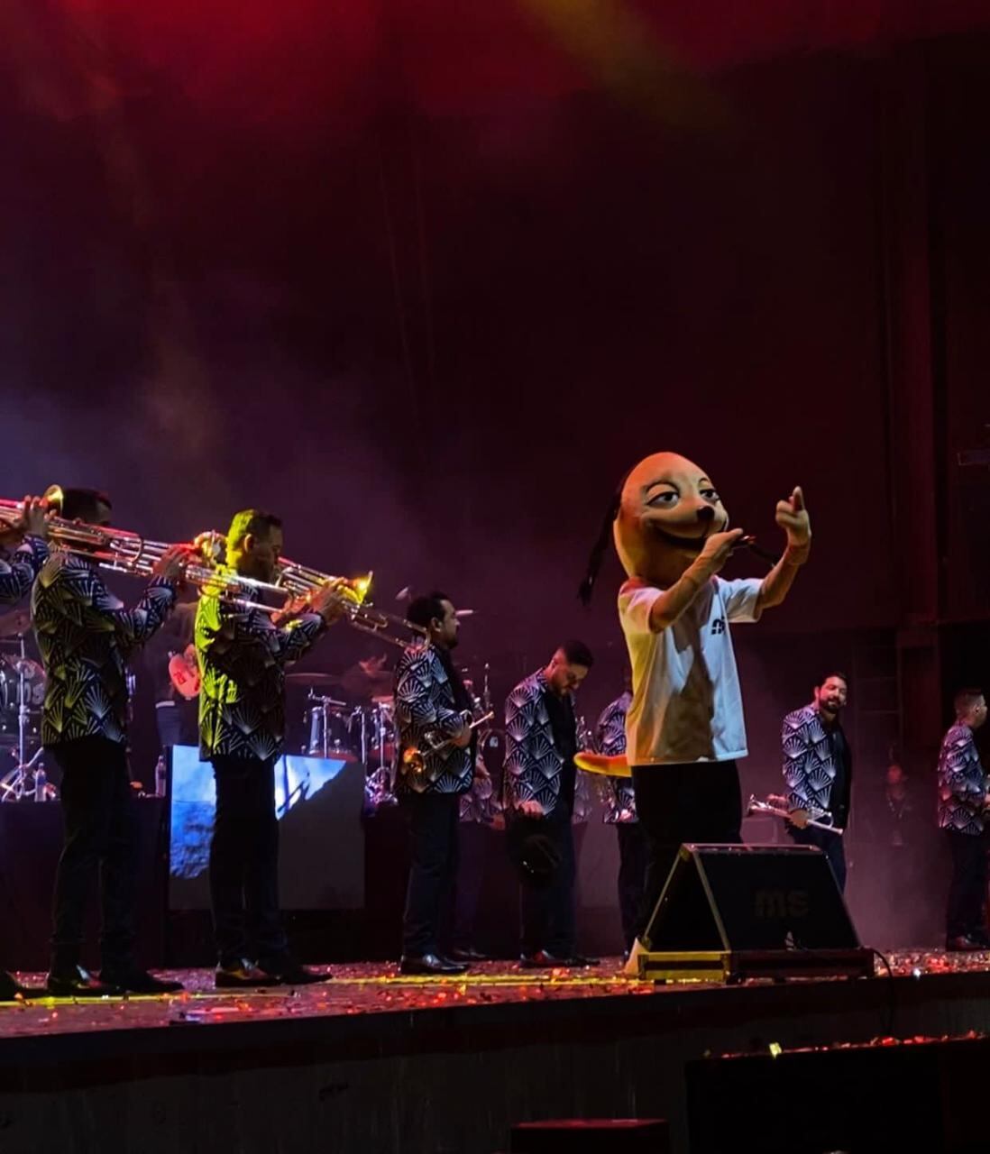 La Banda MS sorprendió a los ticos con una botarga (un tipo de disfraz) en alusión al rapero Snoop Dogg.
