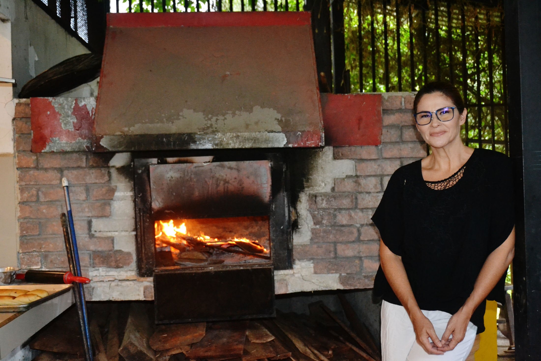"Hangar 67″ es el nombre del bar y restaurante en el que pasa metida de lunes a domingo. Allí la puede encontrar frente a la cocina de leña haciendo pan artesanal para hamburguesas, una deliciosa pizza o pancito casero para acompañar con un café, pues según contó, eso es lo que más le encanta hacer.