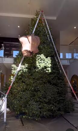 En el video además se ve a su hija, Stormi, y a sus sobrinas quienes ayudaron a colocar los adornos en la parte inferior del gran árbol.