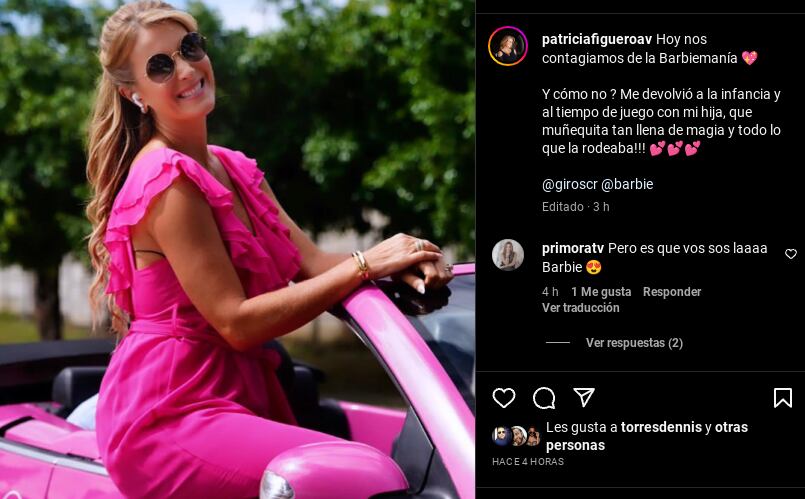 “Hoy nos contagiamos de la “barbiemanía”; y ¿cómo no? Me devolvió a la infancia y al tiempo de juego con mi hija. ¡Qué muñequita tan llena de magia y todo lo que la rodeaba!”, escribió Figueroa en su Instagram, red social donde compartió la imagen.