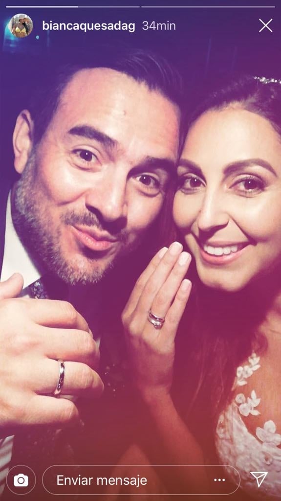 La guapa compartió una pequeña historia en su cuenta de Instagram donde se ve vestida de blanco, con una sonrisa de oreja oreja y mostrando su anillo de casada.