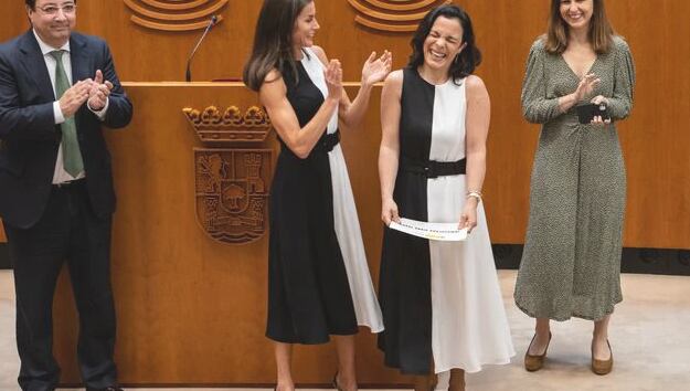 La reina llevaba en dicha actividad un vestido de corte evasé, sin mangas, bicolor, con la parte derecha en negro y la otra mitad en blanco, acompañado de un cinturón ancho negro. Igualito al que se puso Laura, tan solo cuatro días después.