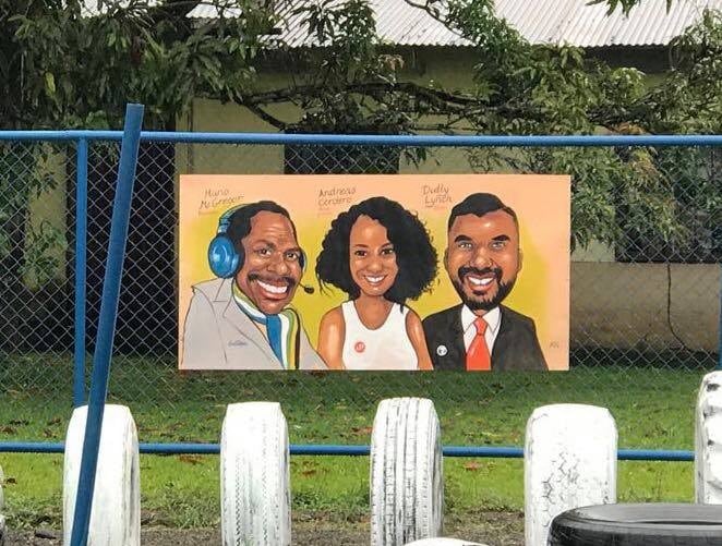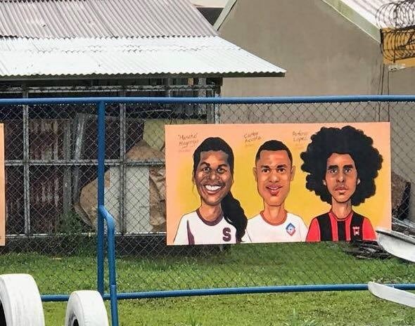 En la malla del parquecito podrán ver la cara del ya fallecido narrador de fútbol Mario McGregor; del exfutbolista Benjamín "Micho" Mayorga, del defensor manudo Porfirio López y hasta la de Lynch.