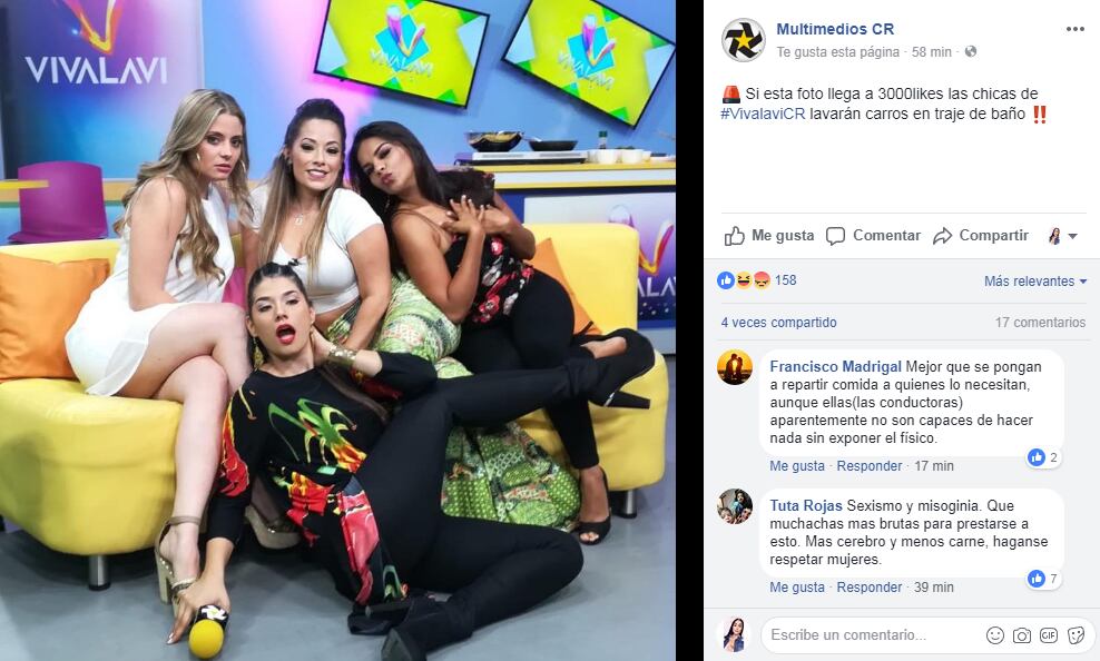 Por medio de una publicación en Facebook, el canal de televisión aseguró que si una foto de las conductoras lograba rebasar los 3.000 likes, todas, en vestido de baño, lavarán chuzos.