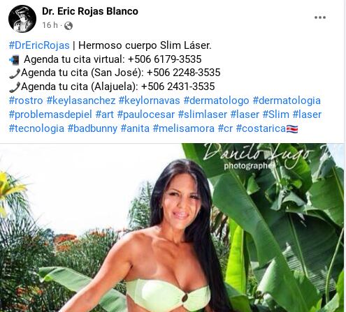 Lo curioso es que, además de dar los números de teléfono de sus clínicas, puso algunas etiquetas de personajes como Keylor Navas, Melissa Mora y Keyla Sánchez, pero nunca mencionó a Marce.