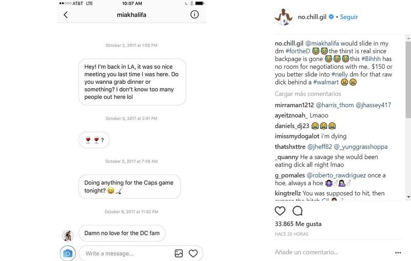 Khalifa fue ridiculizada por el exastro de la NBA Gilbert Arena. La exestrella de los Washington Wizards subió a Instagram pantallazos de los mensajes que le ha enviado la libanesa.