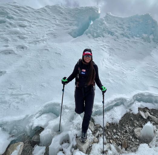 Este domingo ella empezó, oficialmente, su ascenso a la cima más alta del mundo, con una altitud de 8.848 metros sobre el nivel del mar.