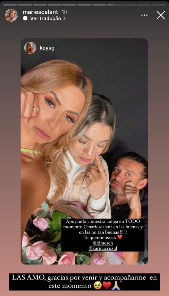 Sánchez acompañó la historia con una fotografía donde ella y dos amigos más que tiene en común con Mary hacen caritas tristes y sostienen un lindísimo ramo de rosas rosadas que, de fijo, eran para Escalante.