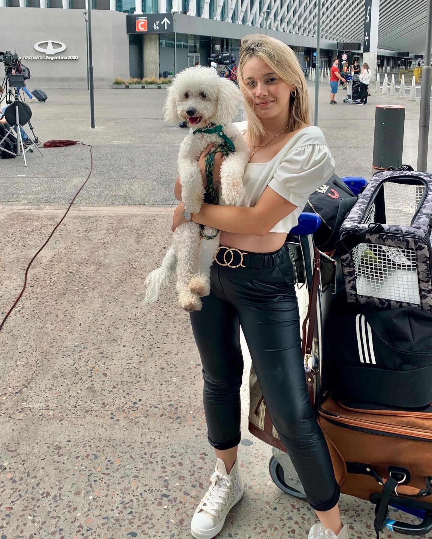 La guapa muchacha, quien es lo que llamarían una “diosa”, compartió en sus redes sociales un par de fotografías acompañada de su perrito Benji, desde el aeropuerto de Buenos Aires para anunciar que ya estaba más cerca de su media naranja. Eso lo hizo la mañana de este jueves, por lo que a esta hora debería estar en suelo tico.