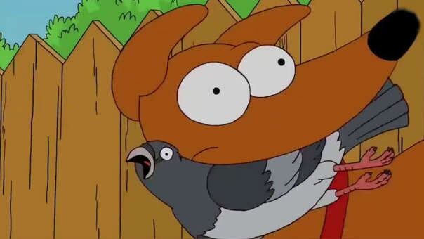 Al final, el perro es el culpable de “terminar” la amistad cuando se come a la paloma mensajera a la que Homero describe como “deliciosa ave”. De seguro el perrito de Renato también estaba pensando algo parecido cuando vio a Chimuelo caer a la fosa que le estaban preparando.