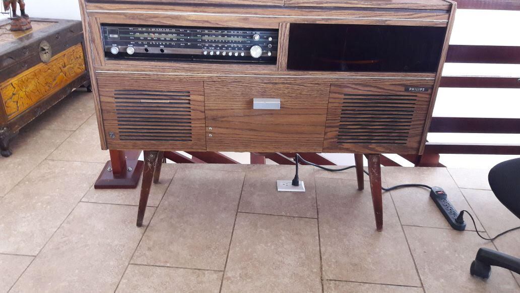 La lista de sus tres favoritos se completa con el radio que está empotrado en un mueble de madera, es de esos grandotes que hasta tiene patas.