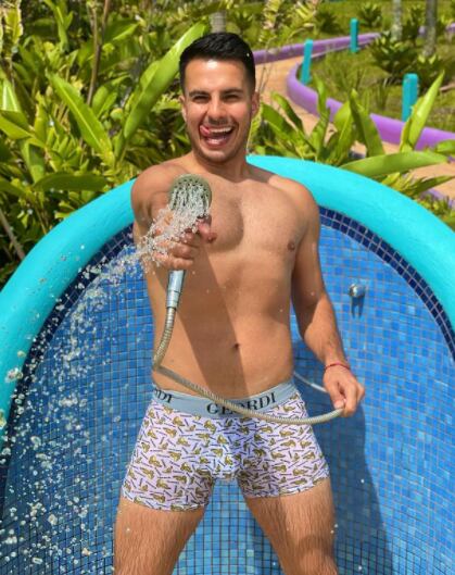 Y para demostrarlo se hizo una sesión de fotos en bóxer mientras se echaba agua.
