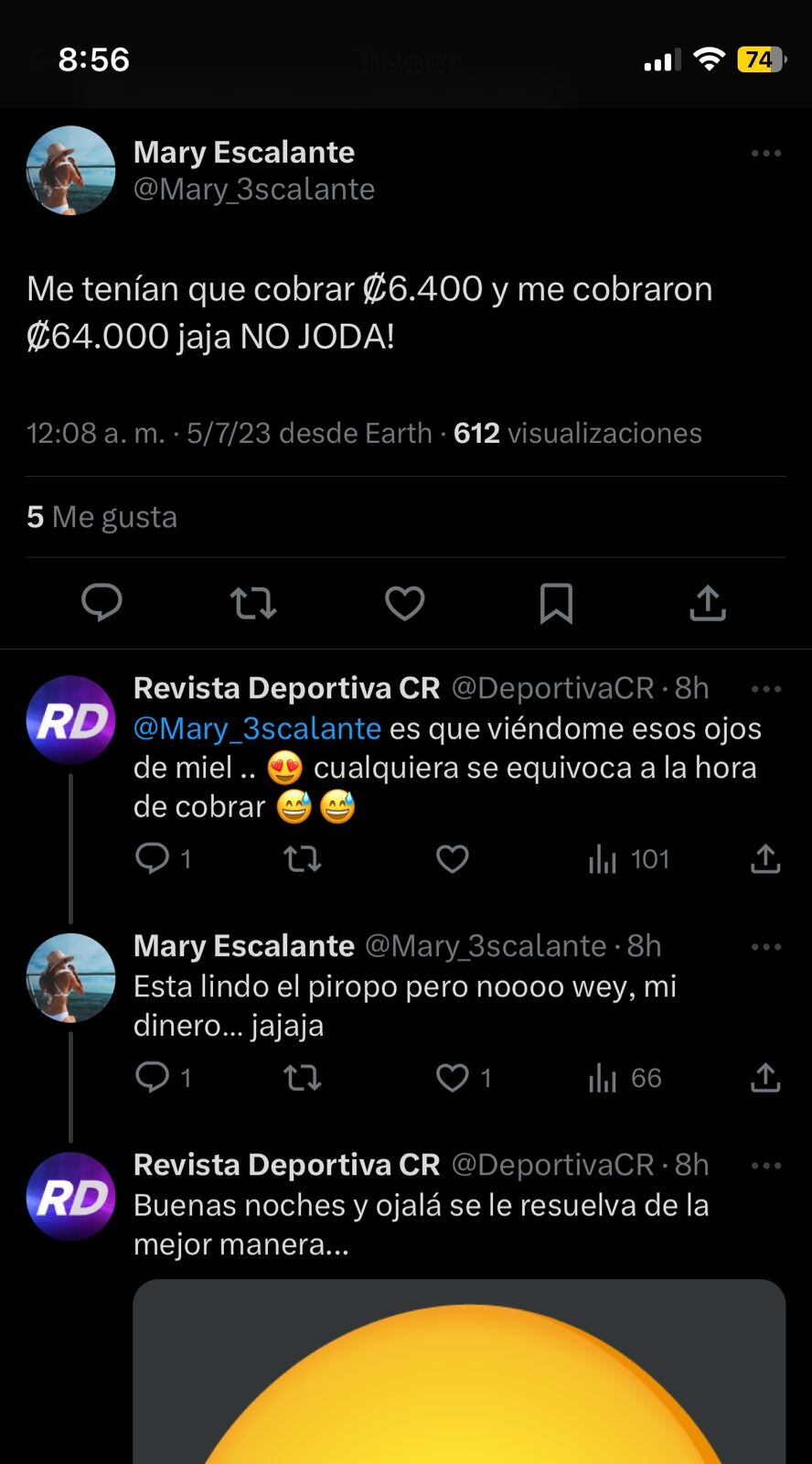 Lo curioso fue la respuesta que recibió de la página Revista Deportiva CR, que no dudó en aprovechar el momento para piropearla.