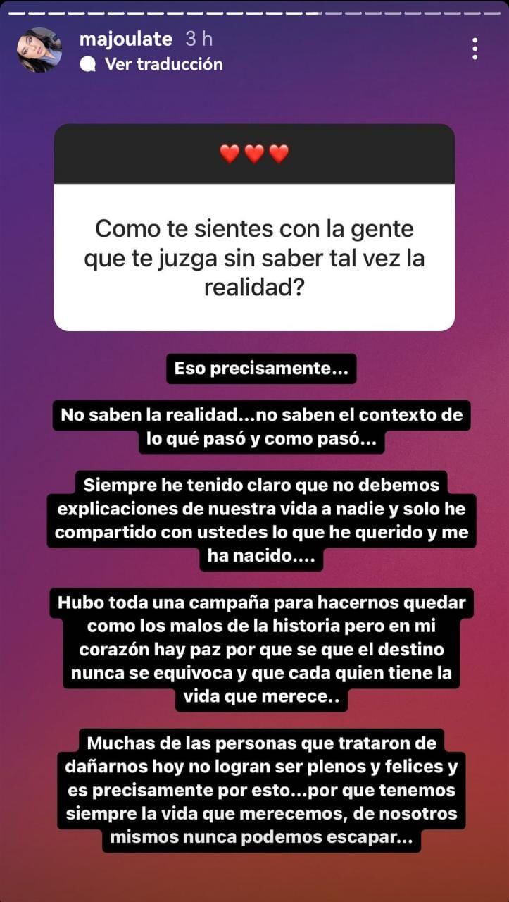 “No saben la realidad, no saben ni el contexto de lo que pasó ni cómo pasó. Siempre he tenido claro que no debemos explicaciones de nuestra vida a nadie y solo he compartido con ustedes lo que he querido y me ha nacido”, contestó.