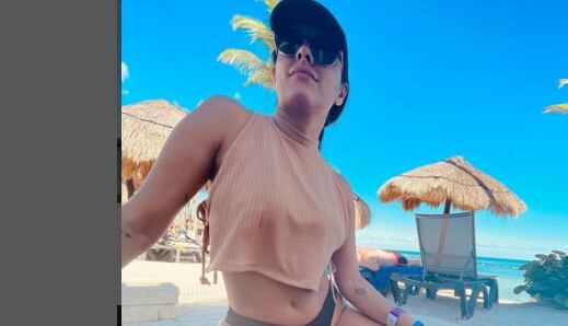 La guapa compartió una foto en sus redes sociales donde sale posando en un top negro y con un buso gris.