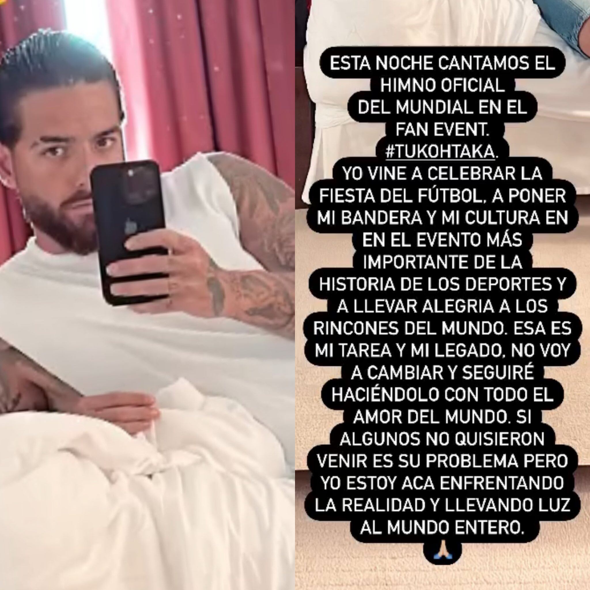“Yo vine a celebrar la fiesta del fútbol, a poner a mi bandera, a mi cultura en el evento más importante de la historia de los deportes. No voy a cambiar, si algunos no quisieron venir, ese es su problema, pero yo estoy acá enfrentando la realidad y llevando luz al mundo entero”, escribió en su Instagram.