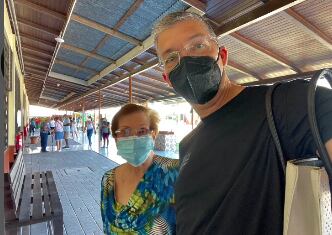 Muy bien agarrado de la mano de su mamita, doña Lidia Loáciga, el periodista Édgar Silva fue a votar este domingo a Liberia.