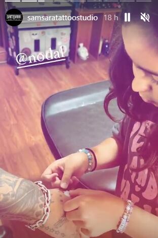 A la primera le hizo una especie de firma con su nombre de usuario en Instagram @Nodal y se le tatuó junto con un corazón.
