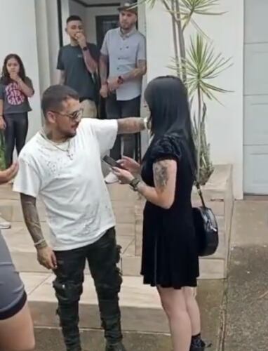 “Cuando sonó el portón que ya él venía, el guardaespaldas nos dijo: ‘tranquilas verdad’, entonces, nos hicieron hacer una fila y cada una pasaba a tomarse la foto con él. El guardaespaldas era el que las tomaba y nos apuraban y yo tenía tanto que decirle que no pude decirle nada, lo único que capté fue decirle que por favor le hiciera un video a mi hija, porque mi hija lo ama, y en eso él me interrumpió y me dice: ‘me encanta tu tatuaje’, y él me corrió el pelo para vérmelo, me decía: ‘me encanta este que tiene aquí', y yo solo le contesté a mí me encantan los suyos”, contó muy emocionada.