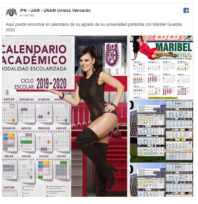 Después de que dicha foto generara revuelo entre los usuarios, la misma página de la red social compartió otra serie de calendarios con la imagen de Guardia, pero esta vez acompañada del logotipo de otras instituciones como la UNAM y la UAM.