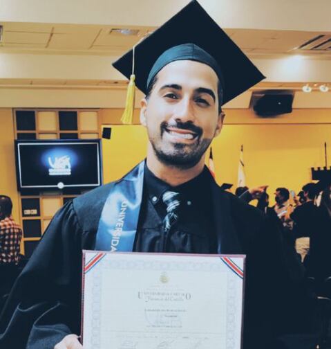 Luego de meses de espera, el artista cartaginés por fin pudo desfilar con toga y birrete para recibir su ansiado título como bachiller en Derecho.