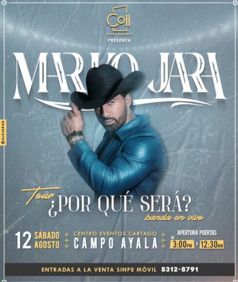 La cita es el próximo sábado 12 de agosto en el Centro de Eventos Campo Ayala, en Cartago, y esa noche se presentará junto con su banda, compuesta por 12 músicos, dando inicio así a su tour “¿Por qué será?.