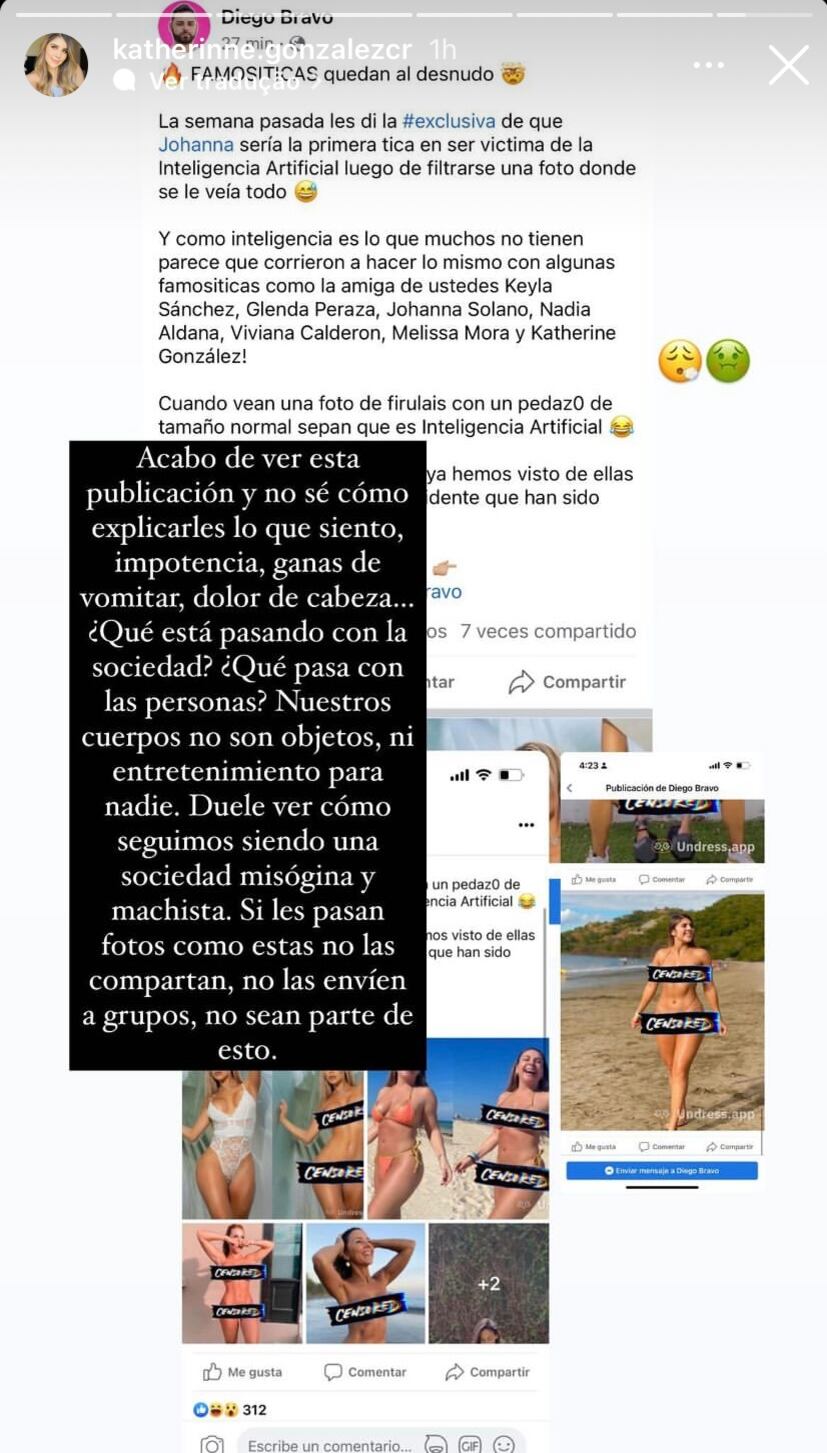 Hasta el momento solo Katherinne González se ha referido sobre la situación. A través de una historia que compartió en su Instagram, ella se enfureció con los responsables de crear y difundir estas fotografías.