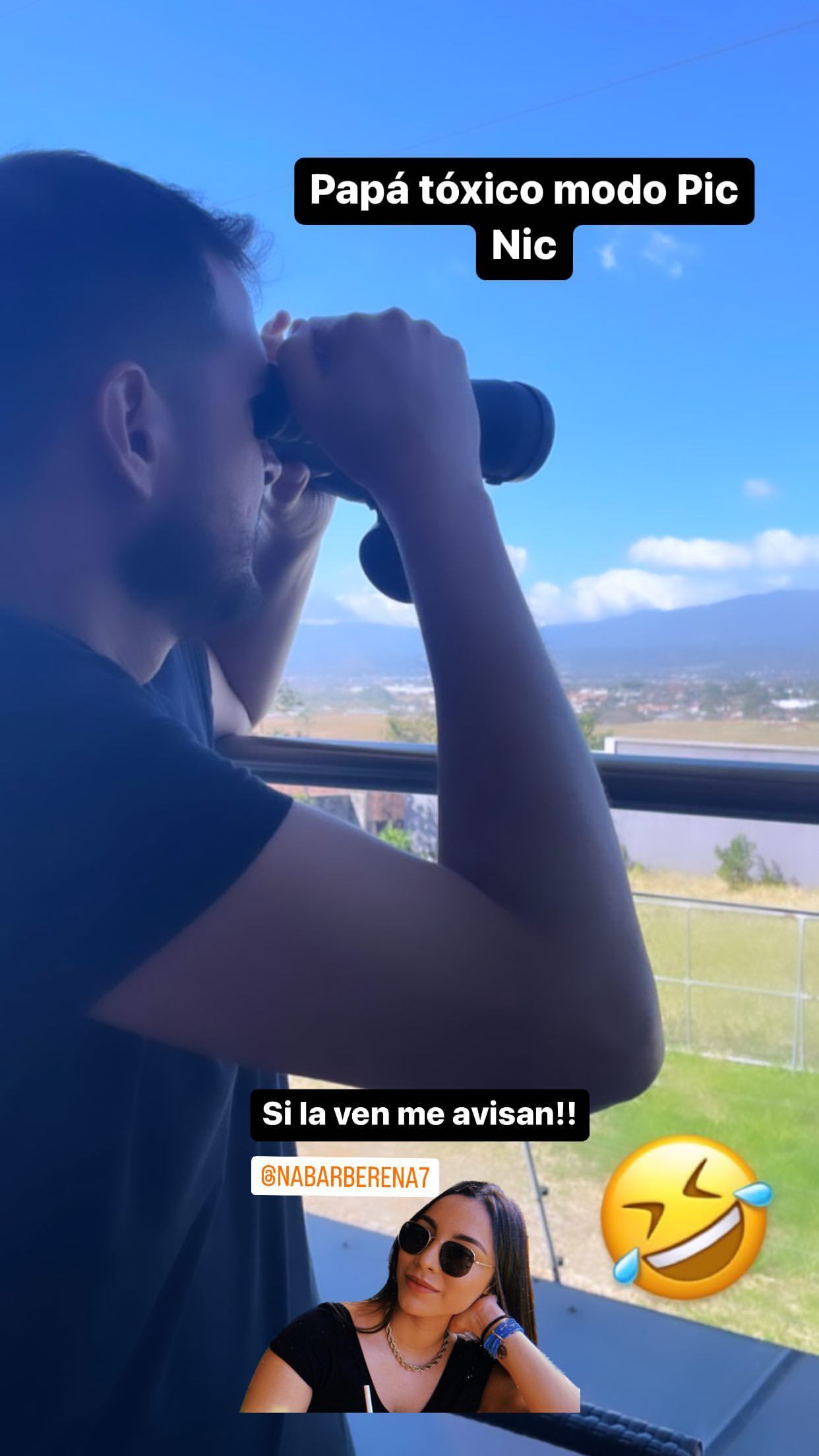 El guanacasteco compartió una imagen muy vacilona en la que aparece con binoculares desde el balcón de su casa vigilando lo que hacía su hija mayor en el Festival Picnic, de este sábado realizado en Belén.