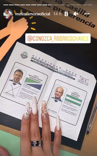 La modelo Melissa Mora no se aguantó las ganas de contarles a sus seguidores de Instagram que ella votó por el nuevo presidente Rodrigo Chaves.