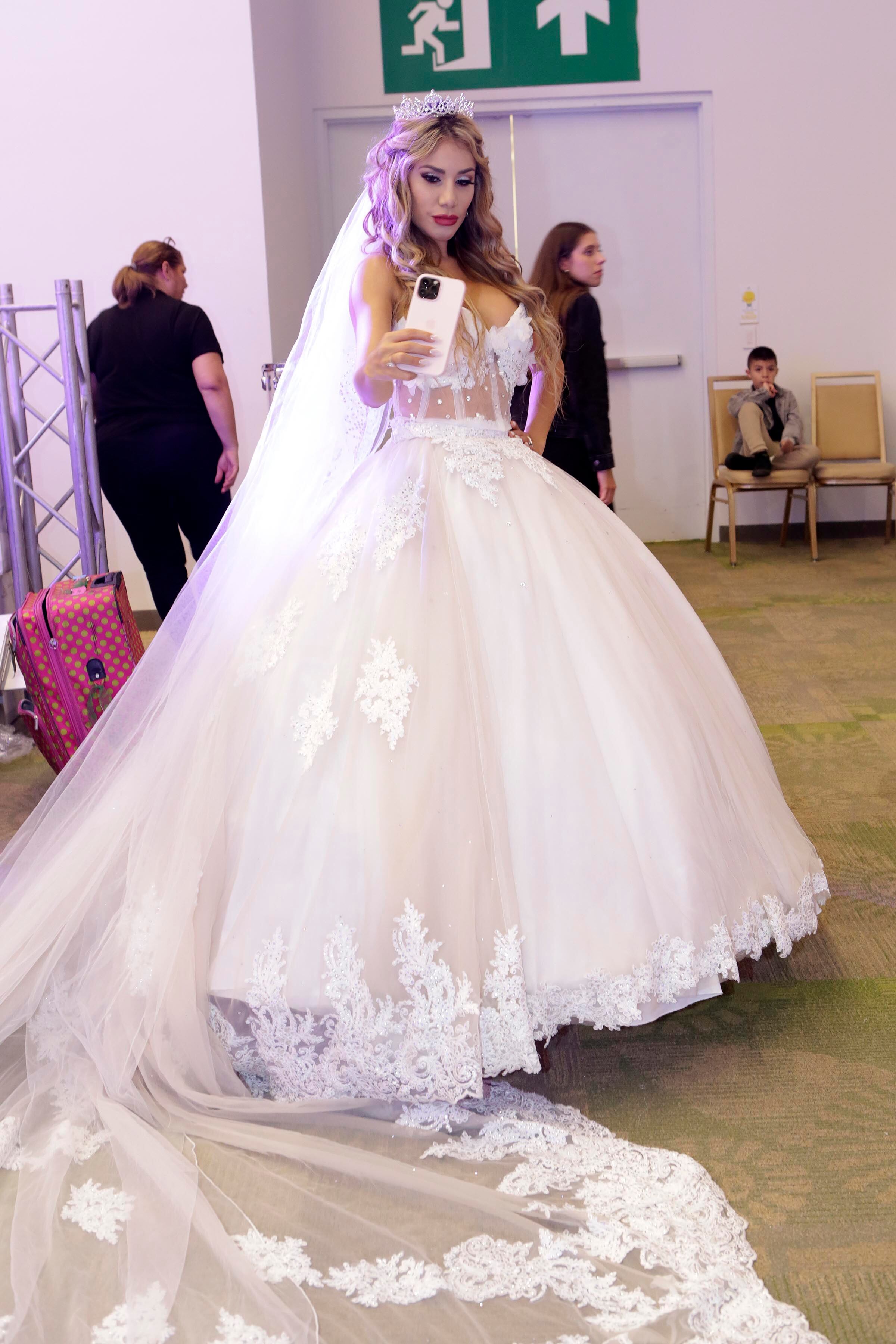 La cantante Melissa Mora fue parte de las modelos que desfilaron este sábado en la pasarela que tuvo la diseñadora Priscilla Delgado en el Centro de Convenciones con motivo de la Expo Novia 2023.