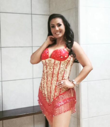 Ese diseño de traje lo usó la exreina de belleza para la gala 8 cuando bailó al ritmo de bachata junto a su bailarín Javier Acuña. En esa ocasión fue cuando su coreógrafo se fracturó la nariz.