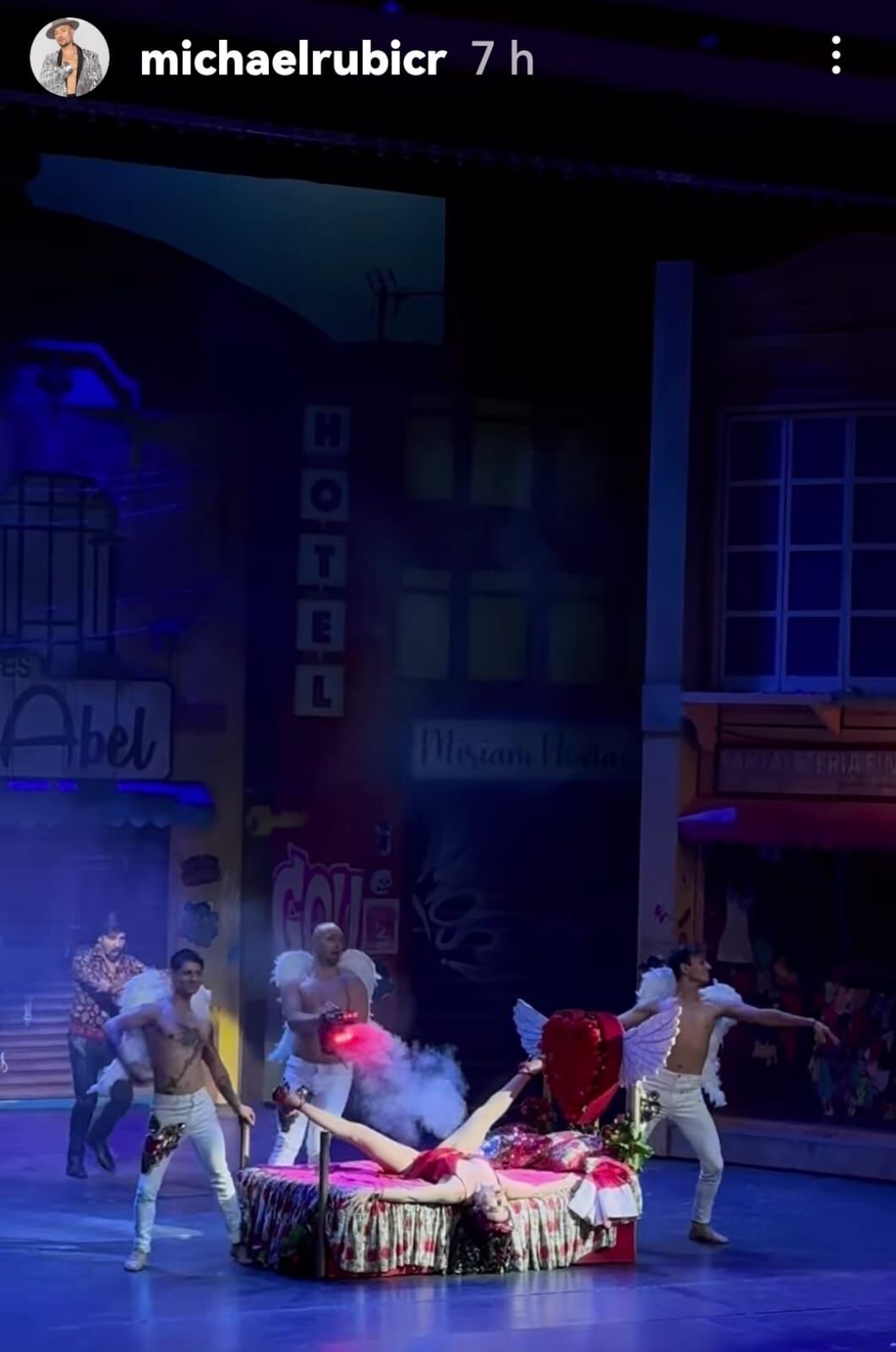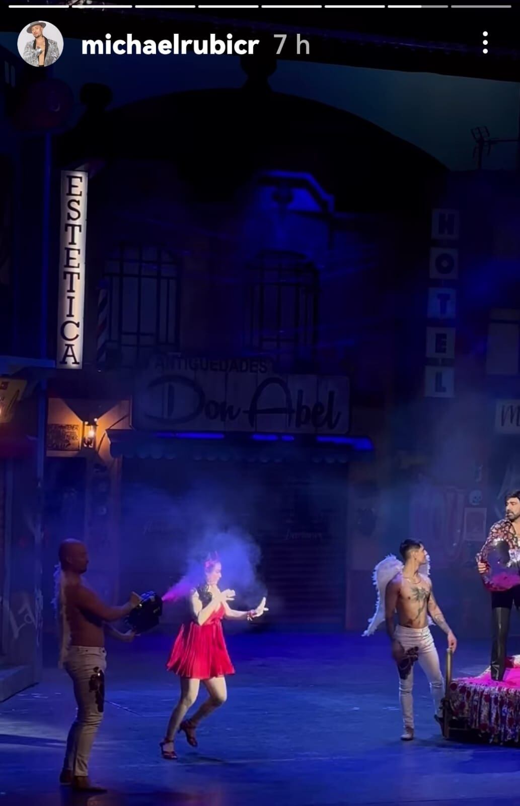Durante la obra, Michael tiene varias escenas en las que debe hacer diferentes cambios de vestuario y en una de ellas está solo en el escenario bailando junto a Maribel.