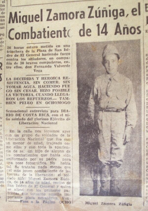 Salguero también fue reconocido por ser el soldado más joven en combatir en la Guerra Civil de 1948, cuando tenía apenas 14 años.