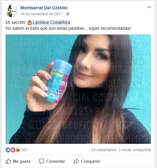 "La FDA (Administración de Alimentos y Medicamentos) de Estados Unidos, el IVIMA (Instituto Nacional de Vigilancia de Medicamento) de Colombia y el Instituto de Salud Pública de Chile ya habían detectado en sus mercados el Lipoblue. Ellos sí tuvieron acceso a alguna muestra o decomiso del producto para hacerle un análisis, confirmando que tenía un ingrediente no permitido (sibutramina). En nuestro caso, a la fecha, y pese a diferentes intentos por contactar a los sospechosos de venderlo, porque sabemos que son varios perfiles en Facebook, no hemos podido lograrlo", señaló Víquez.