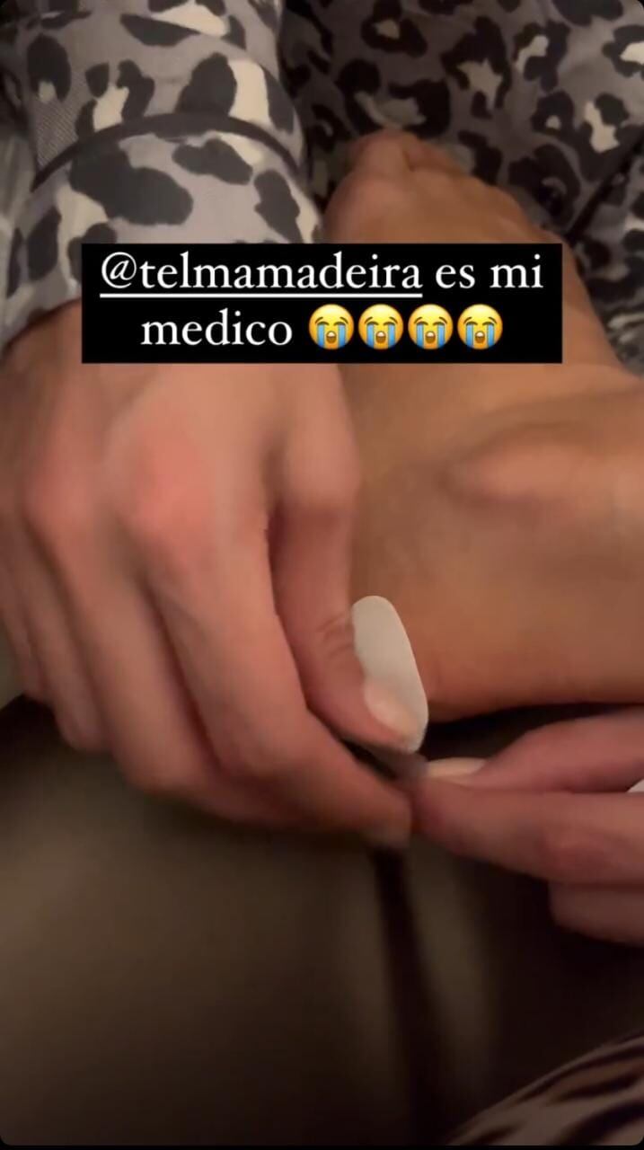 La modelo nacional mostró que la europea le estuvo atendiendo sus heridas con unas curitas “especiales”: “Telma es mi médico”, indicó.